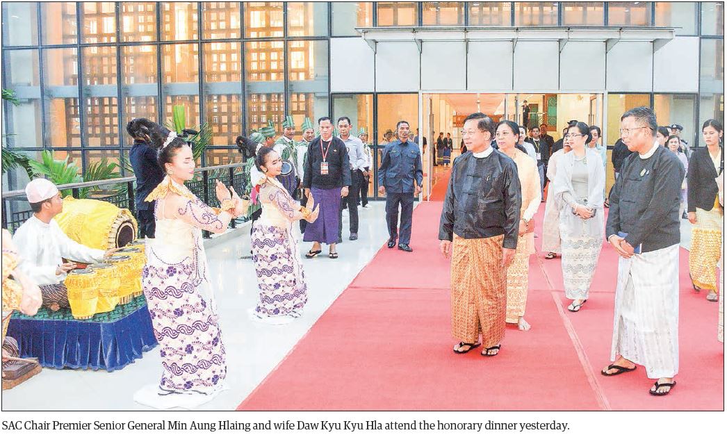 Also present at the dinner were SAC Vice-Chairman Deputy Prime Minister Vice-Senior General Soe Win and his wife Daw Than Than Nwe, the secretary and his wife, the joint secretary and his wife, council members and their wives, union-level dignitaries, union ministers and their wives, the chairman of the Nay Pyi Taw Council, senior Tatmadaw officers from the Office of the Commander-in-Chief and their wives, and officials.