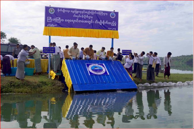 Fish-seeding into the dam was annually held with the aim of securing food safety, boosting fish production, generating the income of local people and fishermen.—Ye Win Naing ( Nyaung-U)