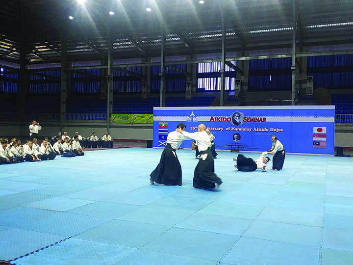 An aikido seminar and international demonstration of the art was held at Mandalay’s Mandala Thiri multipurpose stadium yesterday to commemorate the 20th anniversary of aikido dojos in the former royal capital.
