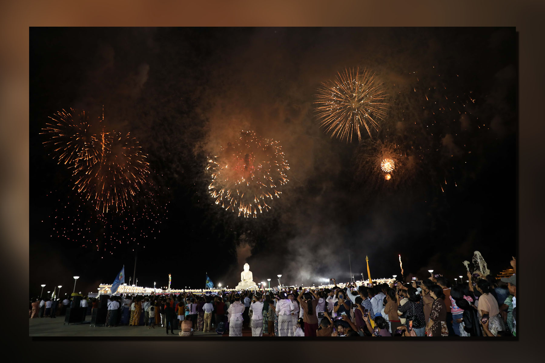 In the precinct of Buddha Park, all structures are illuminated with LED lights. Micro, small and medium-sized enterprises (MSMEs) display and sell domestic products, foodstuffs, personal goods and Myanmar traditional snacks at relevant stalls. In addition, renowned artistes perform song entertainment, whereas theatrical troupes present theatrical performances.