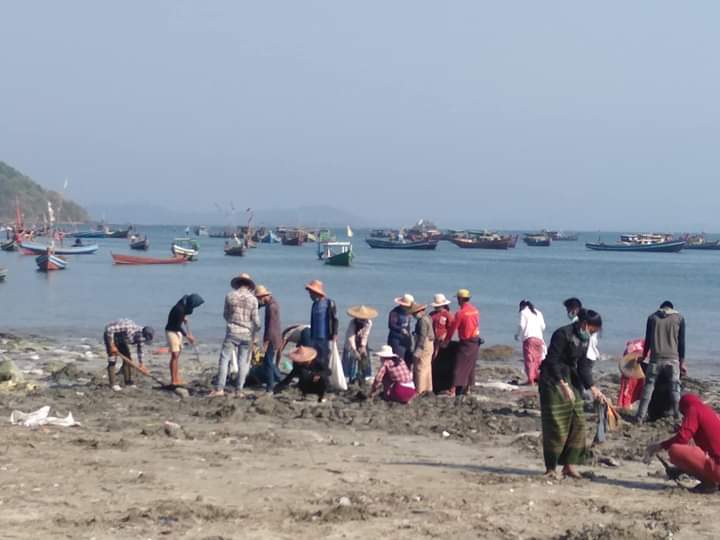 A collective garbage clearance campaign was undertaken on Ngapali Beach, a popular tourist attraction site in Ngapali, Rakhine State on 12 March.
