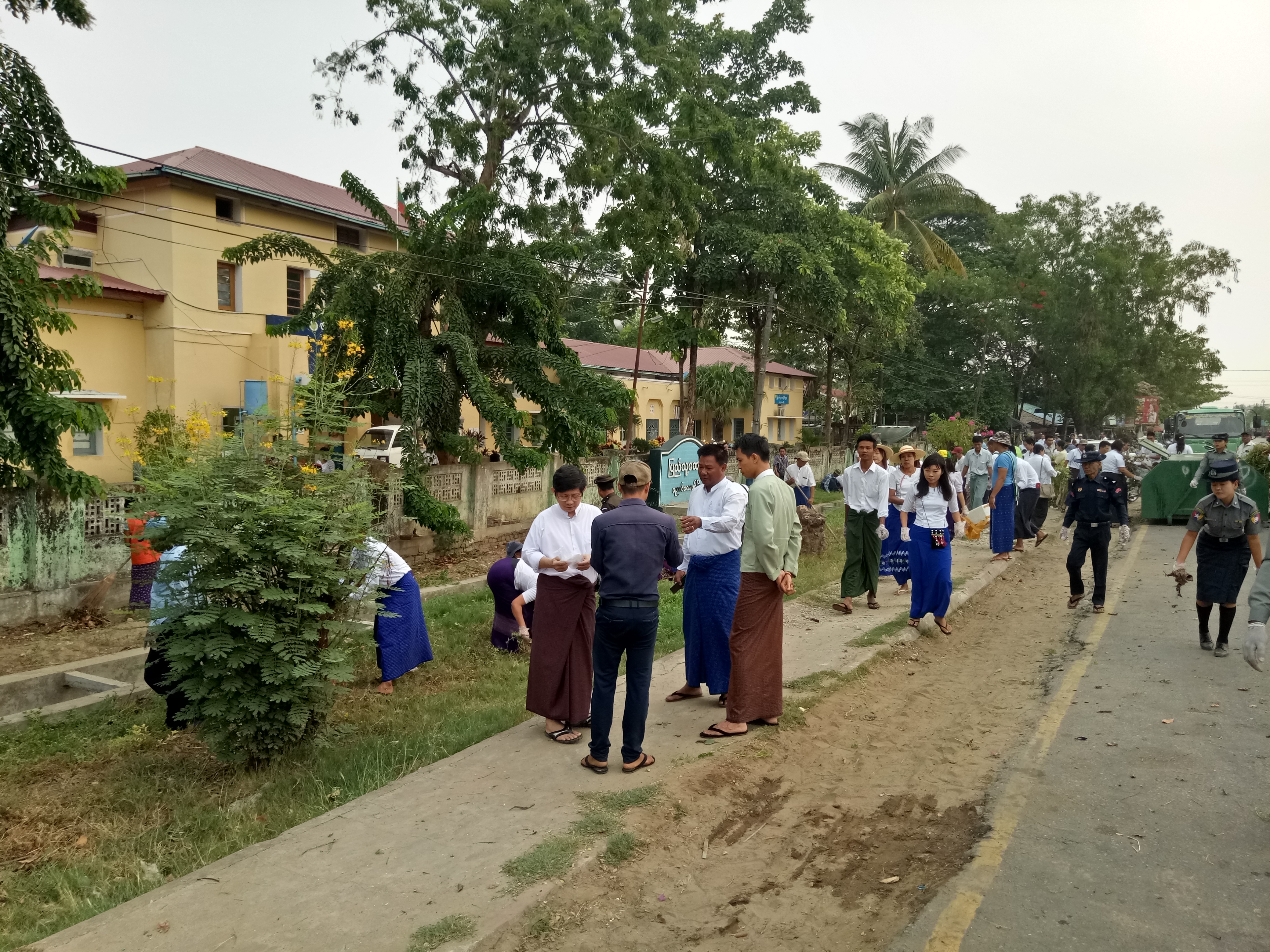 A mass trash collection campaign was conducted by departmental personnel, NGOs, social organizations and local residents in Nyaunglaybin Township, Bago Region this morning.