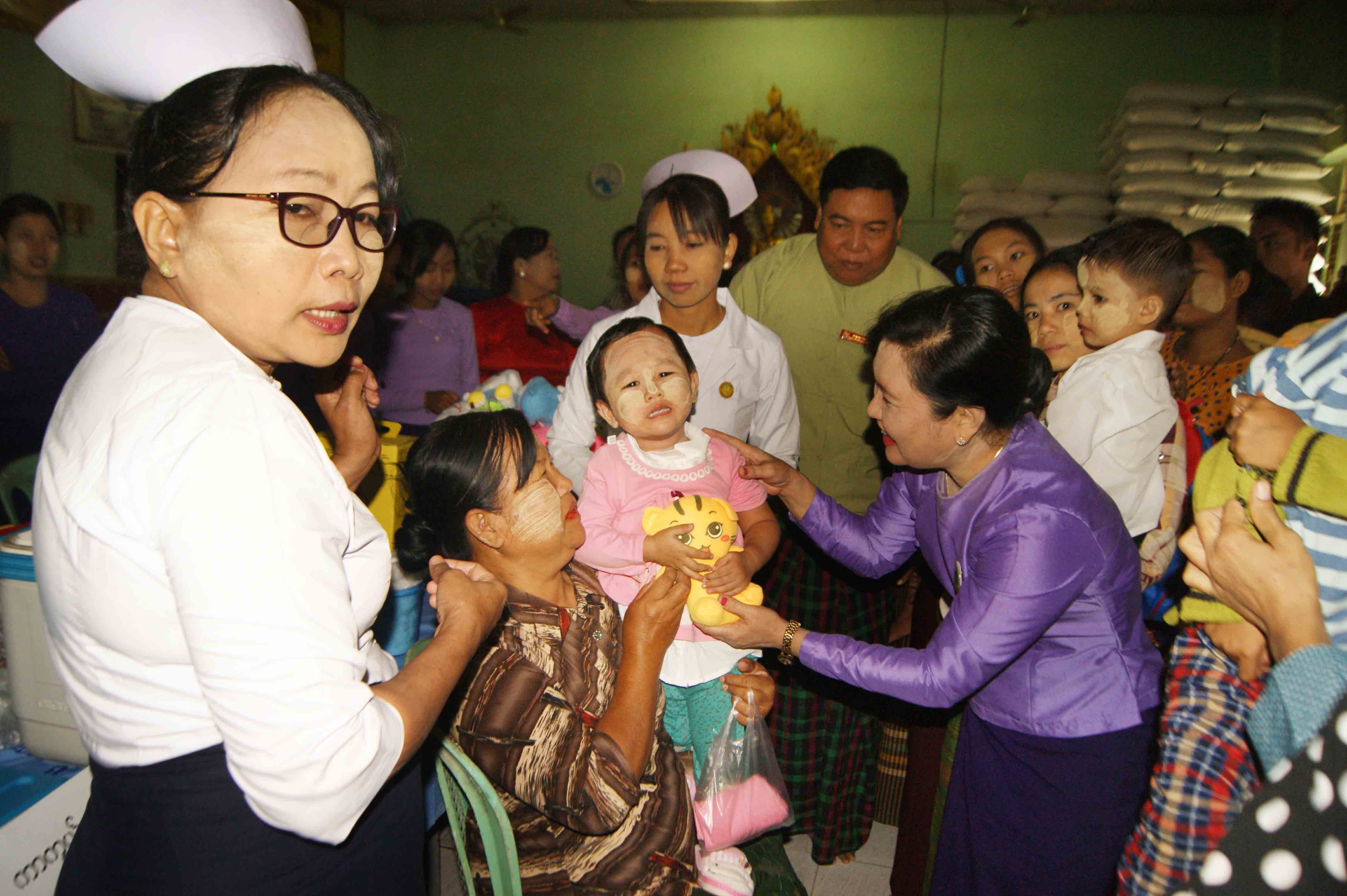 The Department of Public Health under the Ministry of Health and Sports conducted a mass immunization campaign against measles at the Suhtoo Damayone in ward-2 in the town of Mattaya, Mandalay Region this morning.