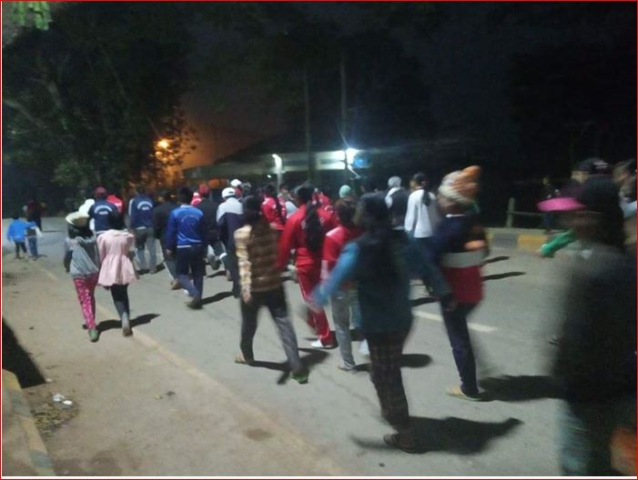 Mass walking started at 5:30 am along Bogyoke Road from the town hall and turned back along circular road to the town hall, the end point. Then, they took collective physical exercise in front of the town hall.