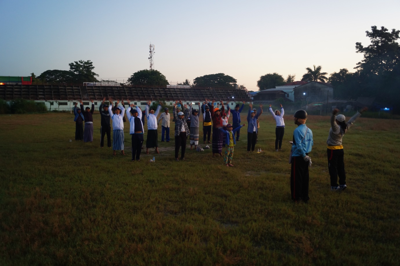 The township Sports and Physical Education Department organized Mass walk activity in the town of Ngathaingchaung, Yegyi Township, Ayeyawady Region this morning.