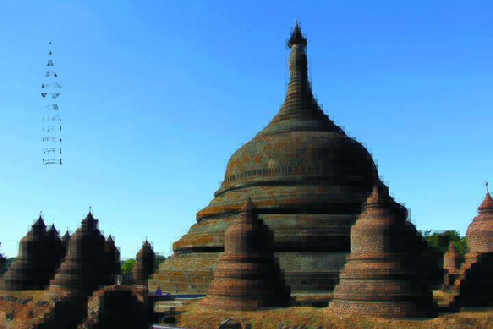 The second source of the term’ Mrauk U’ is also found in The New Rakhine Chronicle thus: When the Taung-nyo Hill and the Kukkar Hill were bulldozed and the ground levelled for the site of the Mrauk U palace, the excavators saw a female monkey guarding over an egg of a pea-hen. After this phenomenal event, King Min Saw Mon named his new town ‘ Myauk U’, meaning , ‘the egg of the monkey’. In course of time, the term ‘ Myauk U’ was corrupted to ‘ Mrauk U’.
