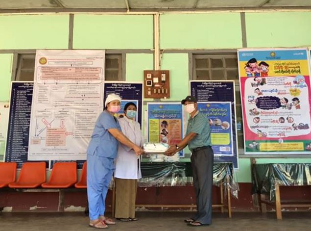 Personal protective equipment suits were accepted by the Township Medical Superintendent Dr. Zin Mi Han, and spoke words of thanks to the donors.—Myo Nyunt Shwe, IPRD