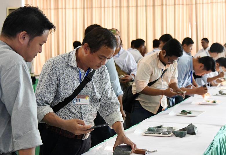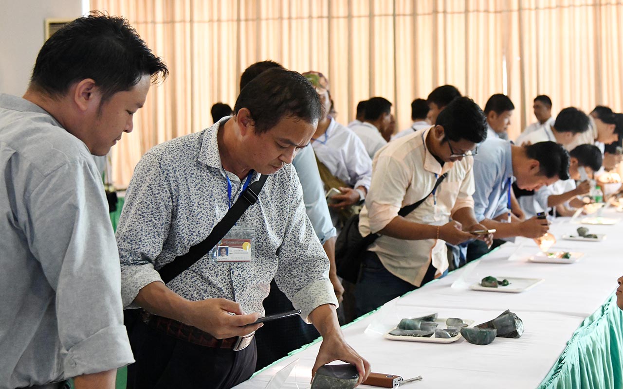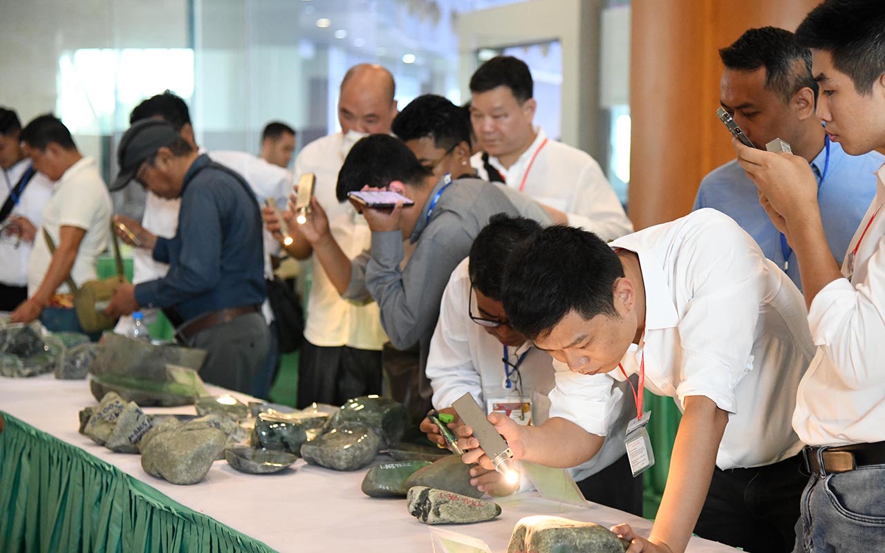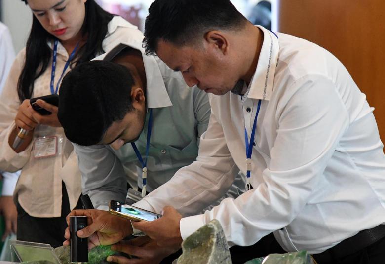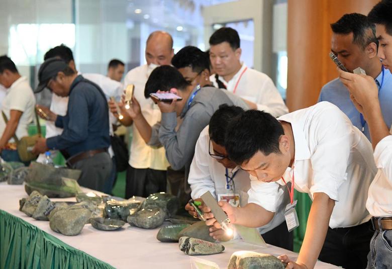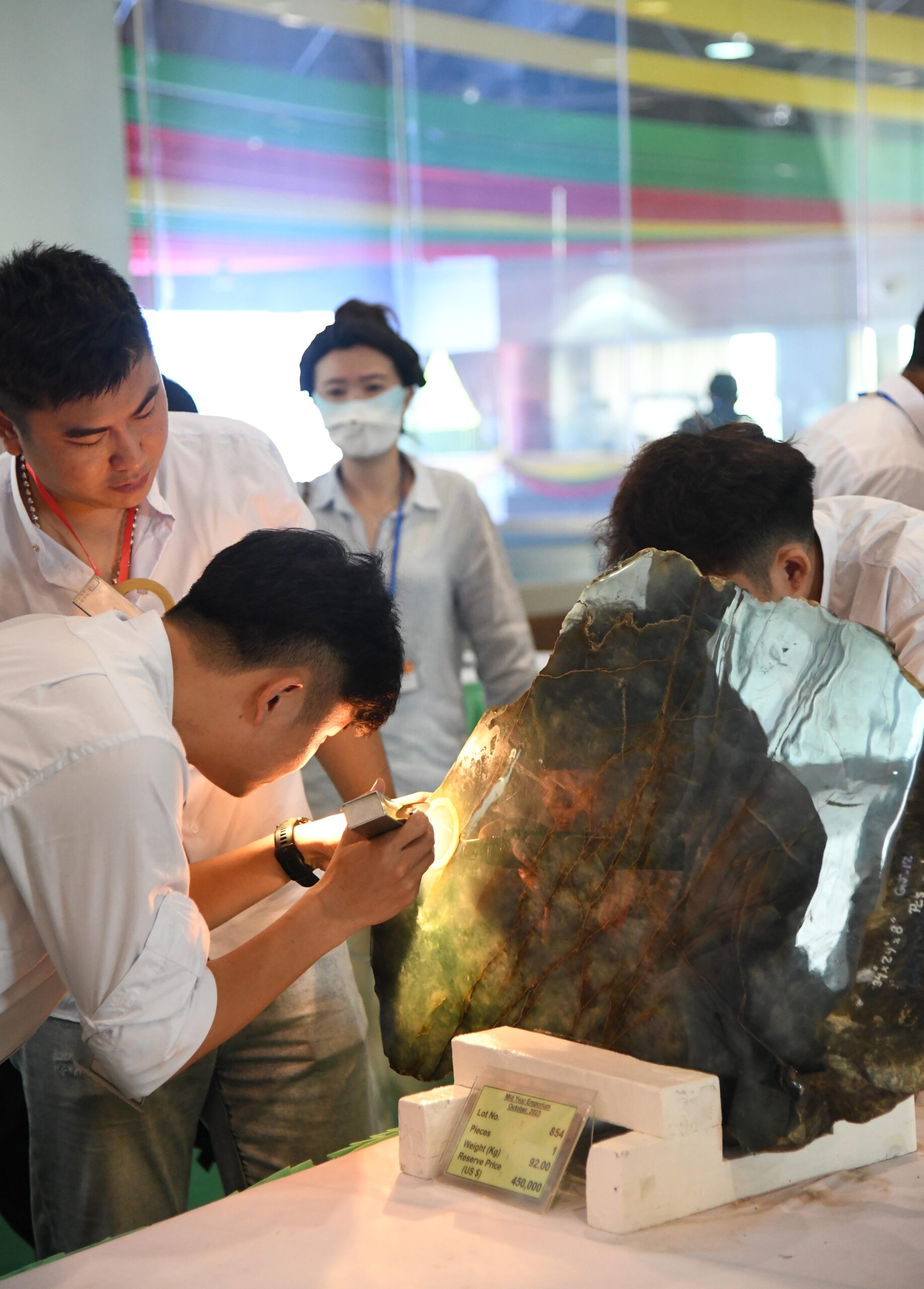 A total of 750 jade lots were on display for the fifth day of the exhibition, where they were inspected by local and foreign merchants, and bids were placed in the tender box.