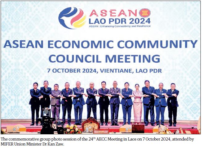 UNION Minister for Investment and Foreign Economic Relations and ASEAN Economic Community Council Minister of Myanmar Dr Kan Zaw participated at the 24th Meeting of the ASEAN Economic Community Council (AECC), which was held on 7 October 2024 in Vientiane, Lao PDR.