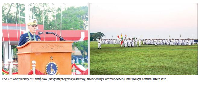 A military parade commemorating the 77th Anniversary of the Tatmadaw (Navy) was held yesterday morning at the Naval Training Command Headquarters in Thanlyin Station yesterday.