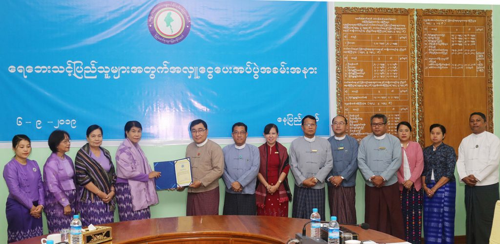Manmar Maternal and Child Welfare Association handed over K20 million to Ministry of Social Welfare, Relief and Resettlement in Nay Pyi Taw. Chairman of National Disaster Management Committee Union Minister Dr Win Myat Aye received it.