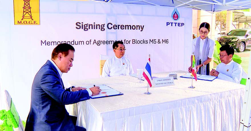 THE signing ceremony of the memorandum of agreement between Myanma Oil and Gas Enterprise under the Ministry of Energy and PTTEP International Ltd to cooperate in expanding production level of the Yadana Offshore Gas Field project was held yesterday at the Ministry of Energy in Nay Pyi Taw.