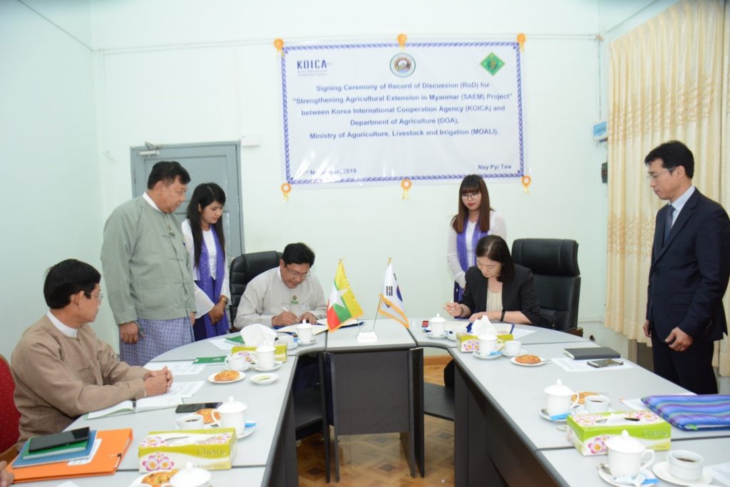 The Record of Discussion signing ceremony for “The Project for Strengthening Agricultural Extension in Myanmar (SAEM)” was held between Department of Agriculture and Korea International Cooperation Agency-KOICA at the head office of the DOA, Ministry of Agriculture, Livestock and Irrigation on 19 November.
