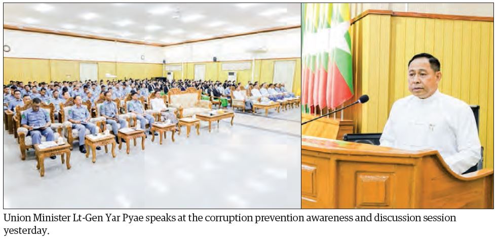 A corruption prevention awareness and discussion session was jointly organized yesterday morning by the Ministry of Border Affairs and the Anti-Corruption Commission at the Ayeyawady Hall of the Ministry of Border Affairs.