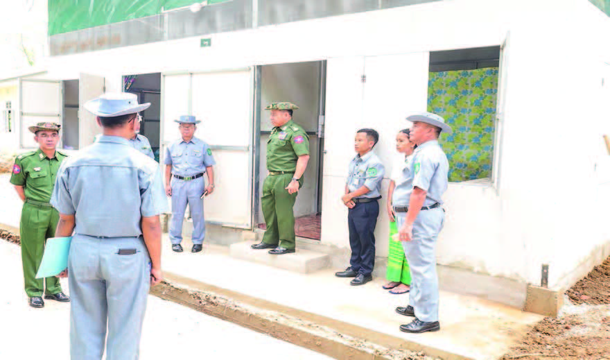 STATE Administration Council Member Union Minister for Border Affairs Lt-Gen Yar Pyae, accompanied by Deputy Minister Maj-Gen Phyo Thant, inspected the newly constructed emergency shelters for the quake-stricken staff yesterday.