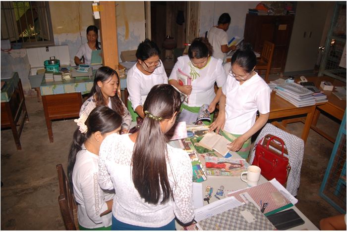 Afterwards, staff from Myanma Economic Bank borrowed books, magazines and journals in the Library.