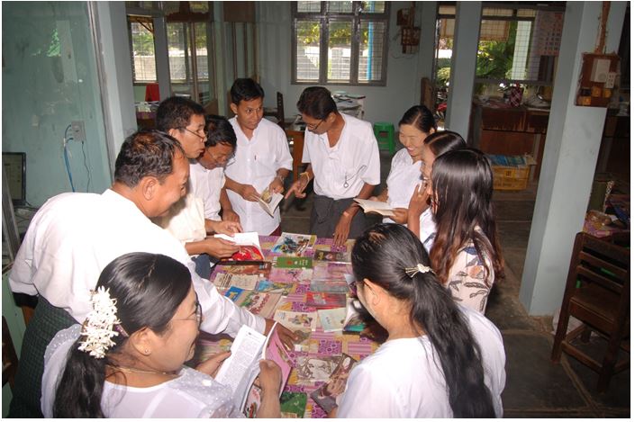 Afterwards, staff from Myanma Agricultural Development Bank borrowed books, magazines and journals in the Library.