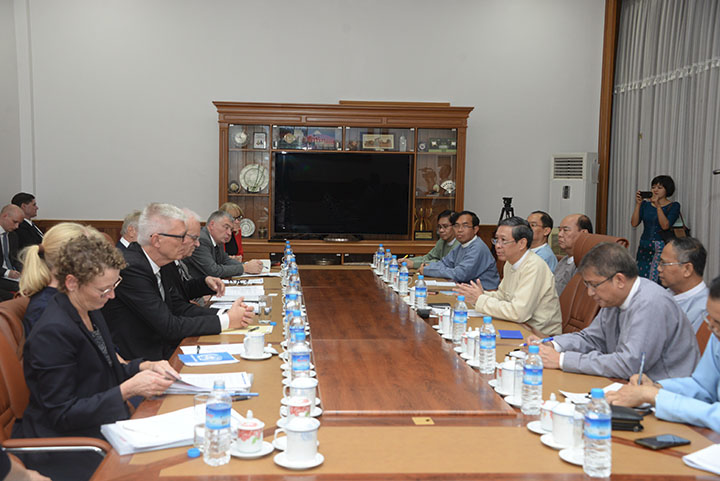 Union Minister for Education Dr Myo Thein Gyi received Danish Parliament Public Accounts Committee (PAC) Chairman Mr Henrik Thorup Gamst and his party at the Education Minister Office in Nay Pyi Taw yesterday.
