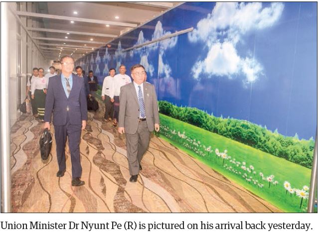 A delegation led by Union Minister for Education Dr Nyunt Pe, who attended the 13th ASEAN Education Ministers’ Meeting, the 7th ASEAN Plus Three Education Ministers’ Meeting, and the 7th East Asia Education Ministers’ Meeting, returned to Yangon from Thailand yesterday.