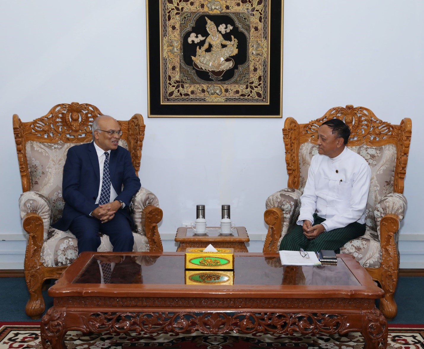 U Ko Ko Kyaw, Deputy Minister for Foreign Affairs of the Republic of the Union of Myanmar, received Dr Md Monwar Hossain, Ambassador of Bangladesh to Myanmar, at the Ministry of Foreign Affairs in Nay Pyi Taw yesterday.