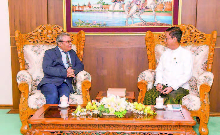 Deputy Minister for Foreign Affairs of the Republic of the Union of Myanmar U Lwin Oo received Ambassador Indra Mani Pandey, Secretary-General of BIMSTEC, who is now in Nay Pyi Taw for his introductory visit to Myanmar, yesterday at the Ministry of Foreign Affairs.