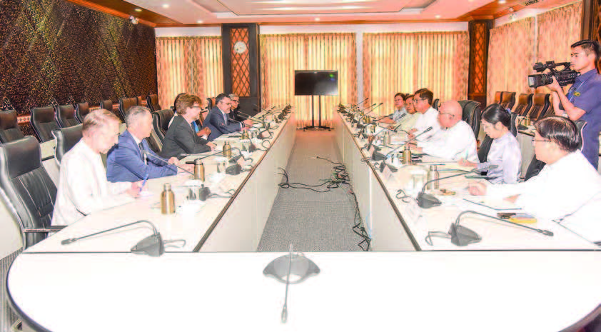 Deputy Minister for Foreign Affairs U Lwin Oo received the delegation led by Ms Edem Wosornu, Chair of Emergency Directors Group (EDG) and Director for Operations and Advocacy Division at UNOCHA in New York, at the Ministry of Foreign Affairs in Nay Pyi Taw yesterday.