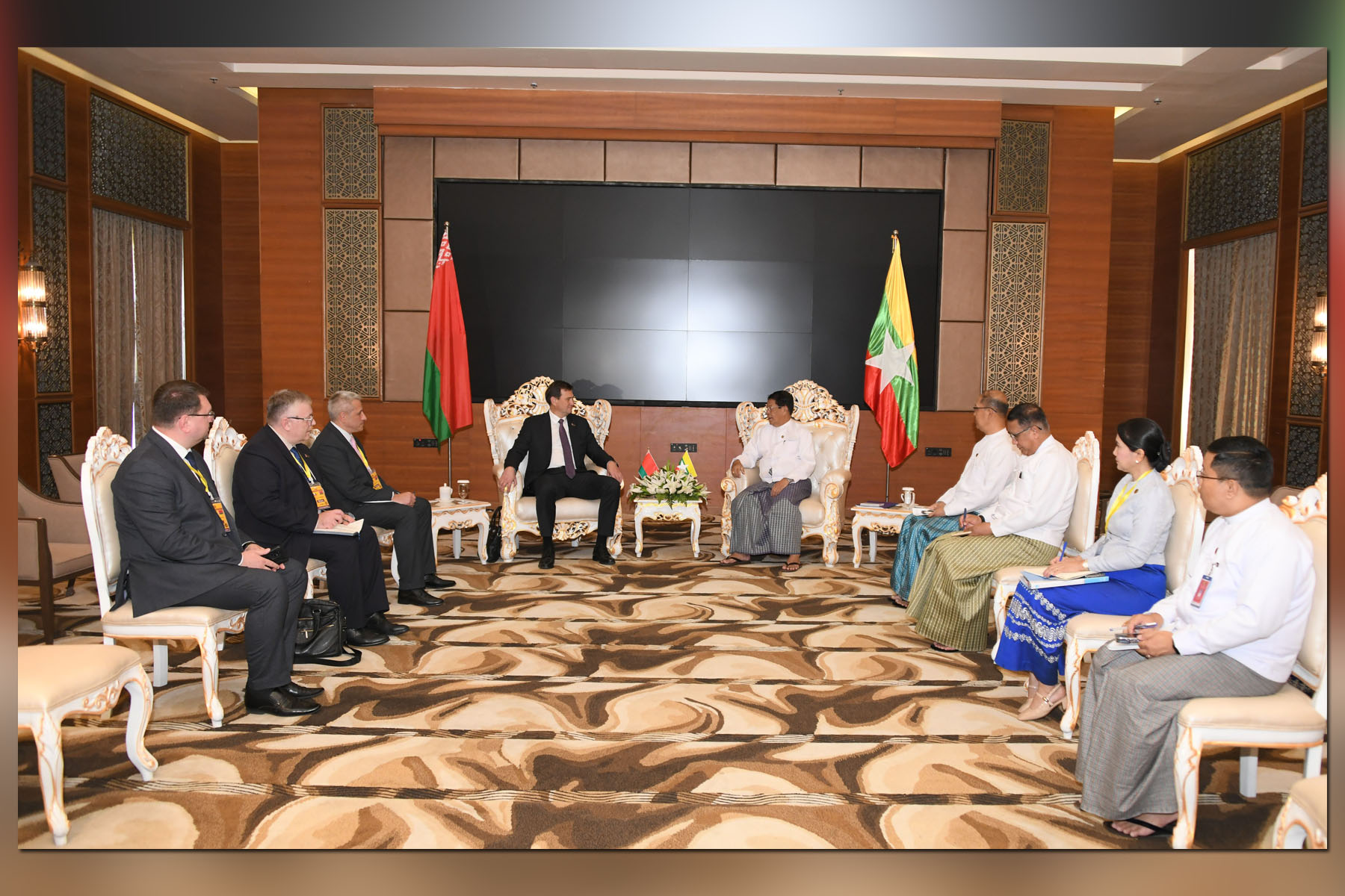 U Than Swe, Union Minister for Foreign Affairs, met Mr Maxim Ryzhenkov, Minister of Foreign Affairs of Belarus, at the Jasmine Naypyitaw Hotel yesterday.
