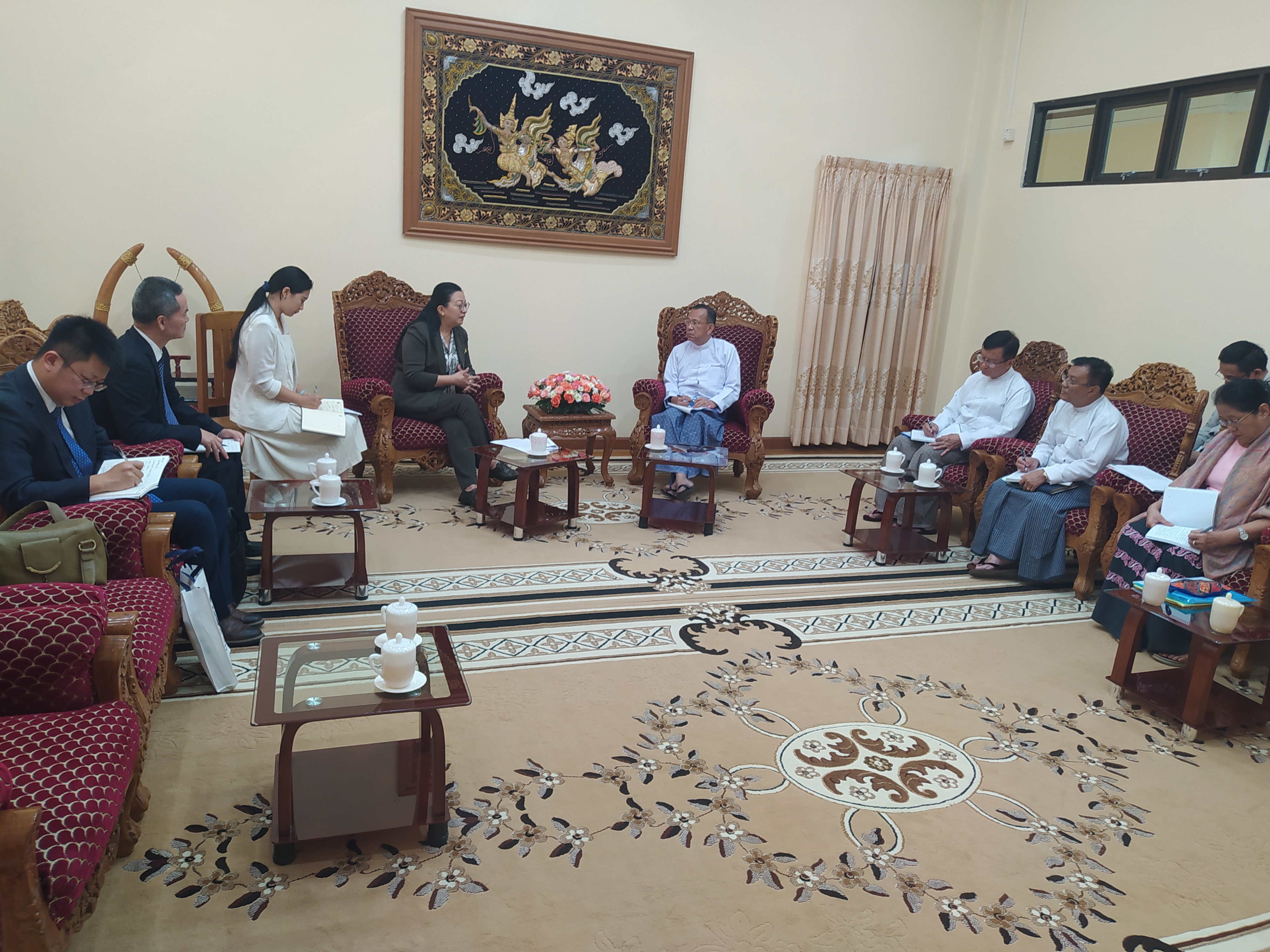 They cordially discussed matters pertaining to further consolidation of bilateral coop­eration, development projects conducted with Chinese loans, payments between Myanmar and China, training for human resource development con­ducted by China and further mutually beneficial cooperation between the two countries.