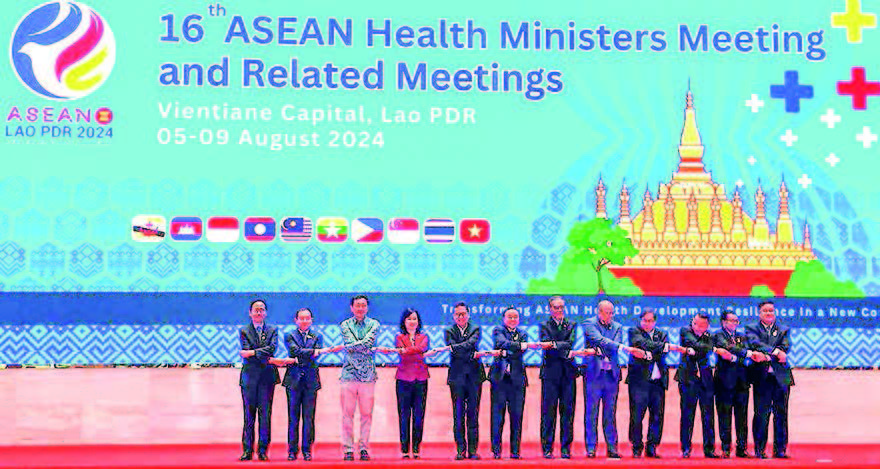 The 16th ASEAN Health Ministers’ Meeting was held yesterday at the National Convention Centre in Vientiane, Lao People’s Democratic Republic. Attendees included health ministers from ASEAN member countries, the Myanmar delegation led by Union Minister for Health Dr Thet Khaing Win, the Myanmar ambassador to Laos, senior health officials, and representatives from the ASEAN Secretariat.