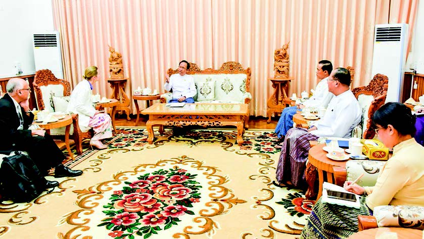 Union Minister for Health Dr Thet Khaing Win received Ms Sara Austin Netzer, Country Director of the United Nations Office for Project Services (UNOPS), and the delegation in the ministry’s office, Nay Pyi Taw, yesterday.