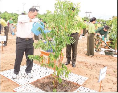 The ministry grew 1,000 saplings, including ironwood, Spanish cherry, Burmese Padauk (Pterocarpus macrocarpus), Royal poinciana, cassia fistula and Eugenia during the event.
