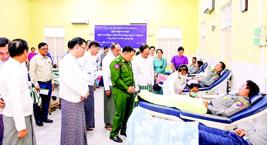 The Ministry of Home Affairs, Myanmar Police Force and clerical staff donated blood to­gether at Nay Pyi Taw General Hospital (1,000-bed) and No 2 Tatmadaw Hospital (1,000-bed) yesterday morning as a ges­ture of hailing the 79th Armed Forces Day, which will fall on 27 March 2024.