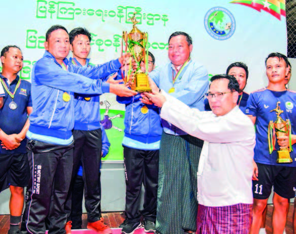 The Permanent Secretary of the Ministry of Information presented an award to the third-prize-winning News and Periodical Enterprise. Deputy Minister U Ye Tint presented medals, cash prizes and trophies to the second-prize-winning Information and Public Relations Department.