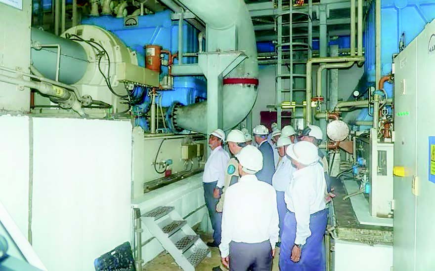 The Union minister pressed the button of No 1 Air Compressor to run properly, inspected the operation system of the air compressor, and No 2 Air Compressor.