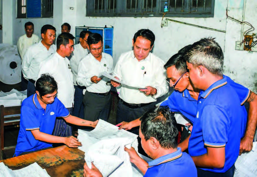 Following the inspection, the factory’s manager provided a detailed report on the current operations, which was supplemented by additional explanations from U Ko Ko Naing, Director-General of the Department of Printing and Publishing.