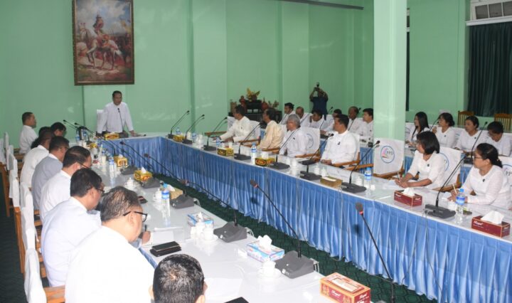 Union Minister for Information U Maung Maung Ohn met officials from the News and Periodicals Enterprise (Yangon) at 2 pm yesterday at the meeting hall of the Printing and Publishing Department on Theinbyu Road, Yangon.