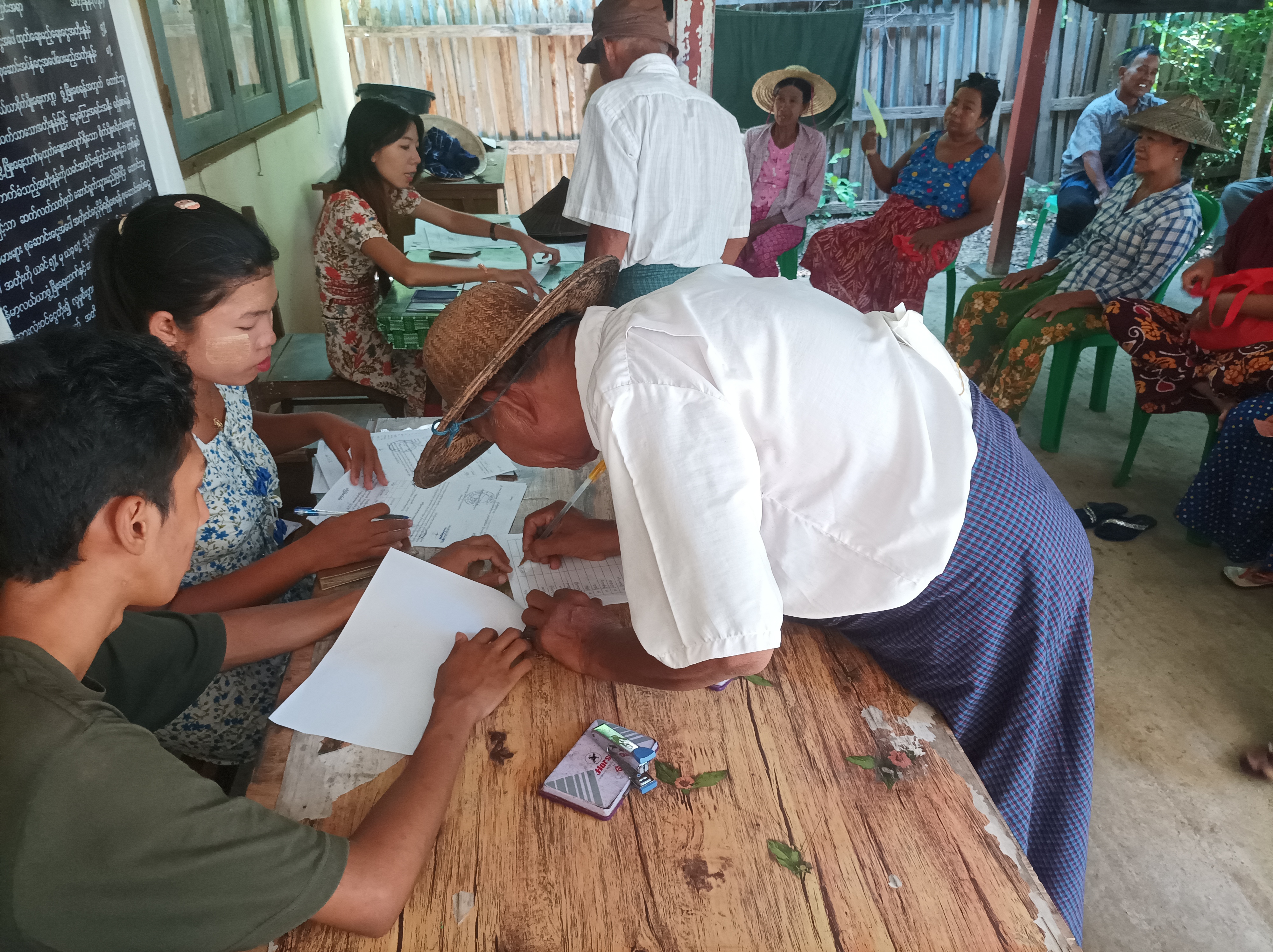 Myanma Agricultural Development Bank in Sinbaungwae Township, Aunglan District, Magway Region is dispensing monsoon agricultural loans to farmers in the township on 6 June.