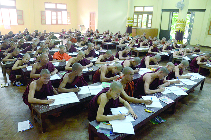 Thirdly it is in the months of Nayone that religious examinations are held for Buddhist monks and lay students. In this article, the writer wishes to touch upon only the religious examination as the other two events need separate articles. In Myanmar Language, the word “Kyaung ausmif;” has three meanings. Firstly training domestic animals, training children. Kyaung means a school as well as a monastery. There is no separate word for school and monastery. Residences of monks are called Phongyi Kyaung teaching schools are called Sarthin Kyaung. Myanmar literary education originated in monasteries where monk teachers give Three Rs education to children free of charge regardless of race, religion, creed, and social status. Reading, Writing and Arithmetics are taught by monks teachers and train in Buddhist morals, esthetics and civic duties.