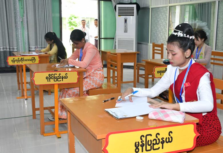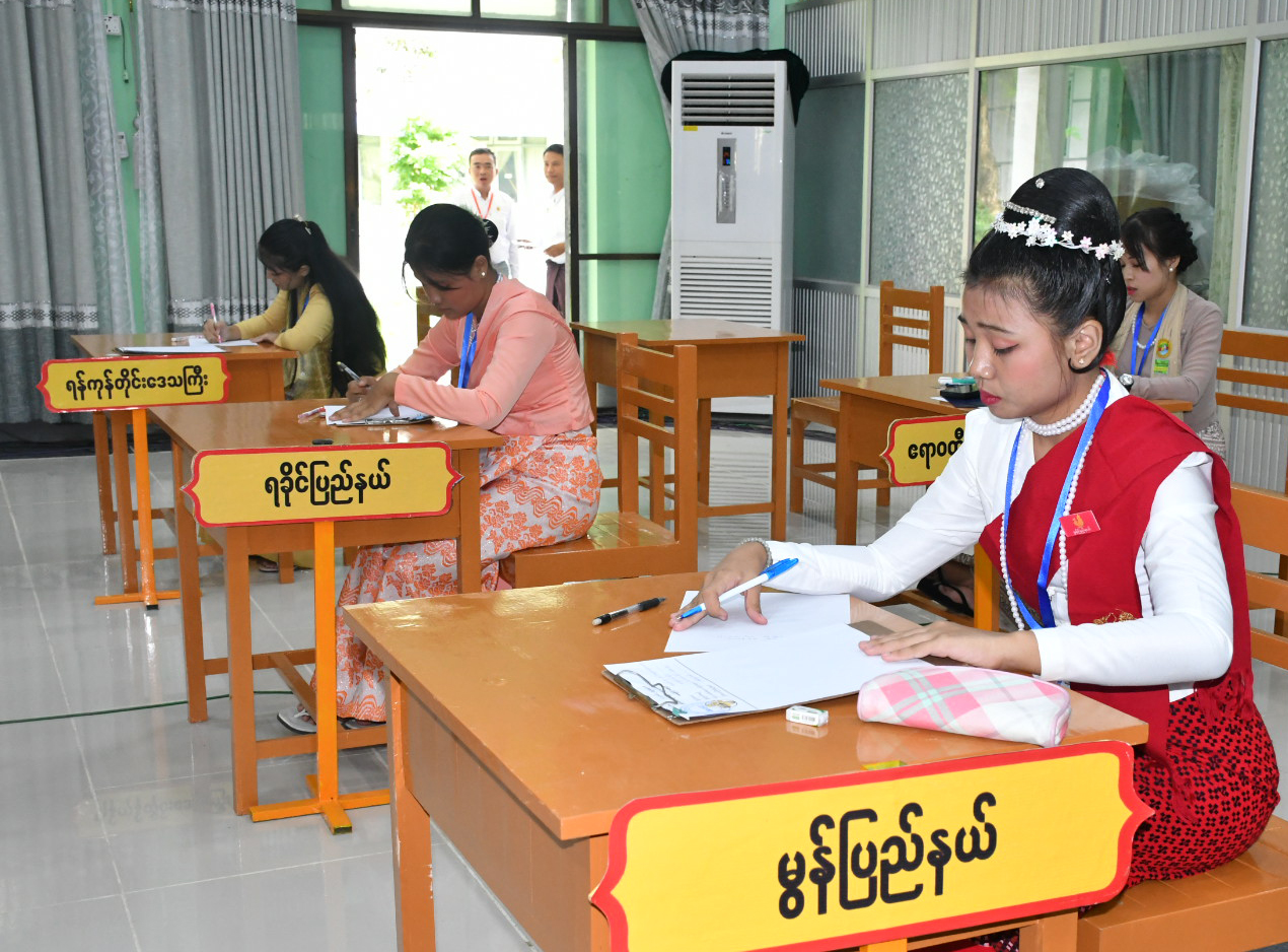 In the Mini Theatre of the National Museum (Nay Pyi Taw), contestants from regions and states participated in the higher education men’s classical song contest and the basic education (aged 10-15) girls’ contest.