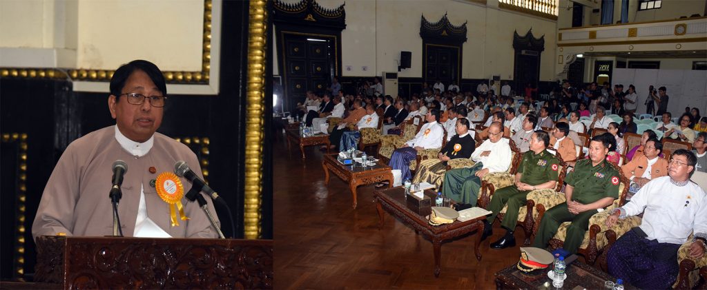 Then, MP U Myint Lwin and the Commander of Yangon Region Command, Maj-Gen Thet Pon, read messages from the Speaker of the Pyidaungsu Hluttaw, U T Khun Myat, and the Commander-in-Chief of Defence Services, Senior General Min Aung Hlaing, respectively.