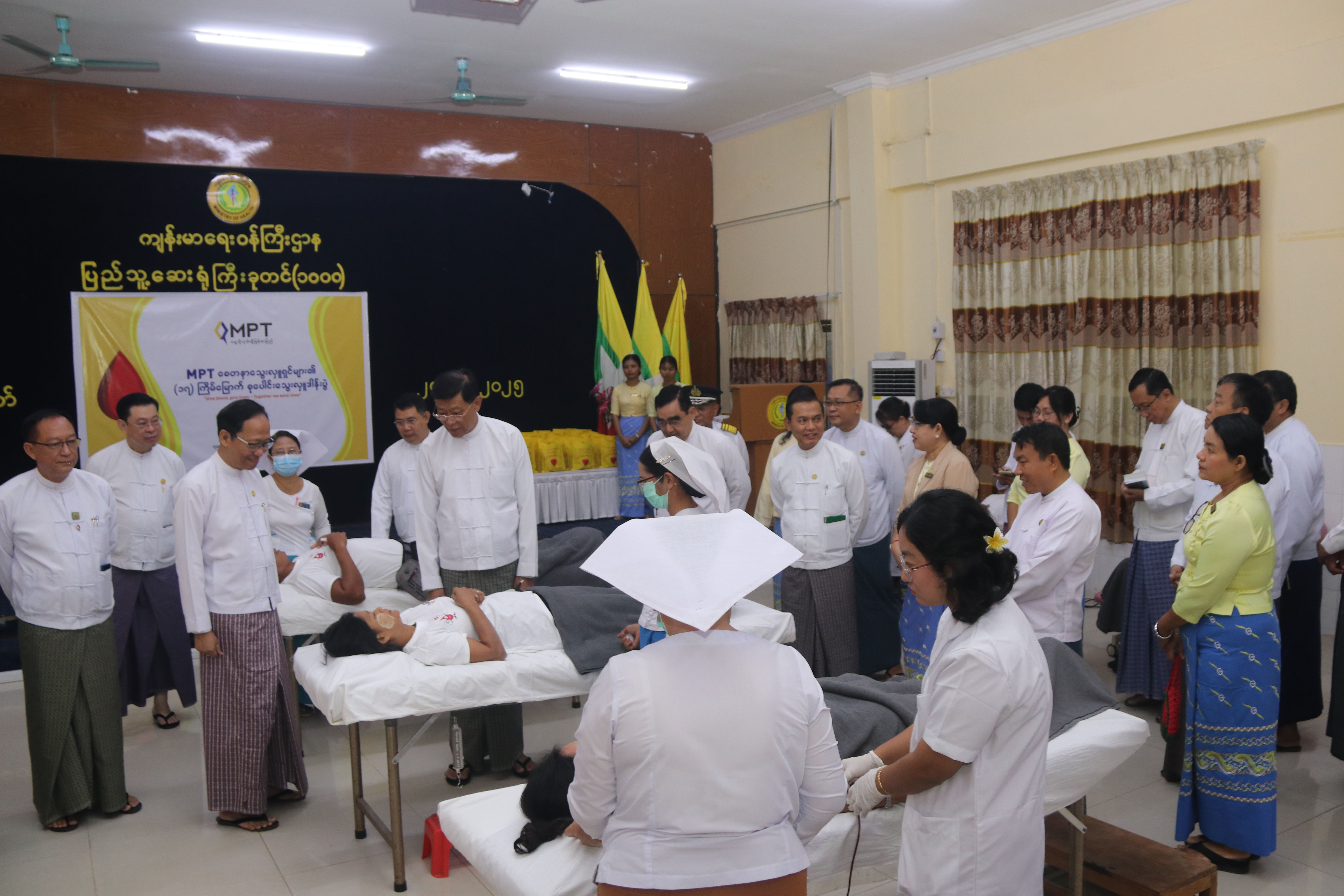 MYANMA Posts and Telecommunications (MPT), under the Ministry of Transport and Communications, held its 17th blood donation event at Nay Pyi Taw General Hospital (1,000-bed) yesterday morning, with 43 volunteers and ministry staff donating blood.