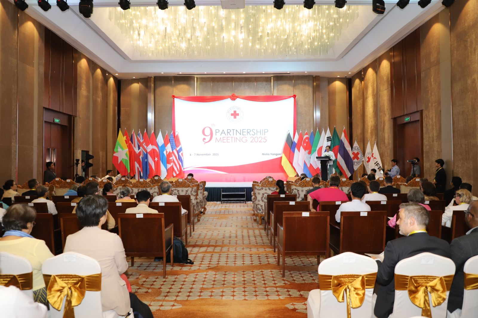 THE ninth Partnership Meeting, organized by the Myanmar Red Cross Society (MRCS), opened yesterday morning at the Melia Hotel in Yangon. Union Minister for Health Professor Dr Thet Khaing Win, departmental heads, the MRCS president, the vice-president, secretariat staff, diplomats, representatives of the International Federation of Red Cross and Red Crescent Societies (IFRC), domestic and foreign donors, and volunteers attended the event.
