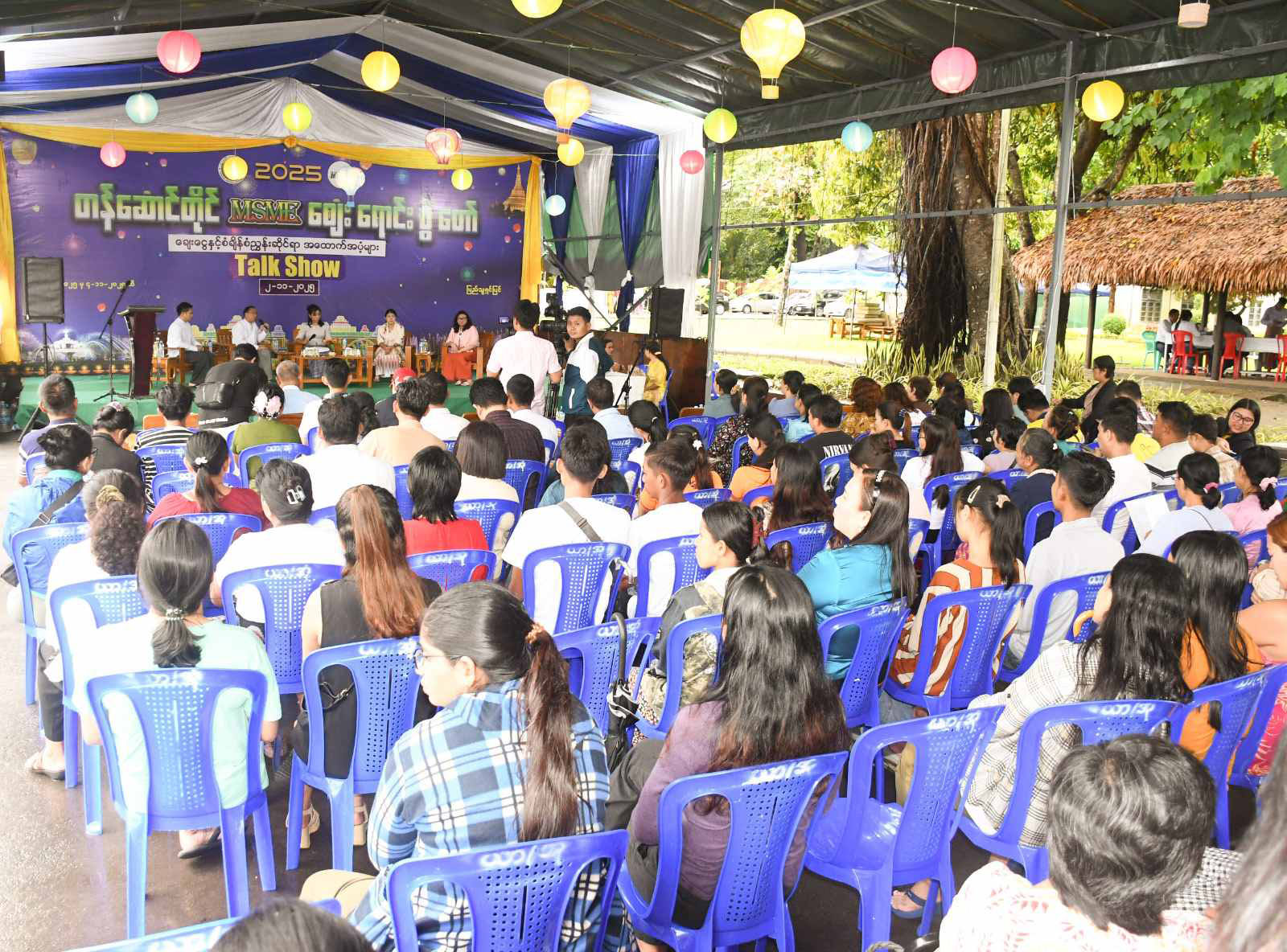 At the Tazaungdine market fair, a talk show discussed topics such as loans, standards, and support for MSMEs, attracting the interest of business owners and festival-goers alike.