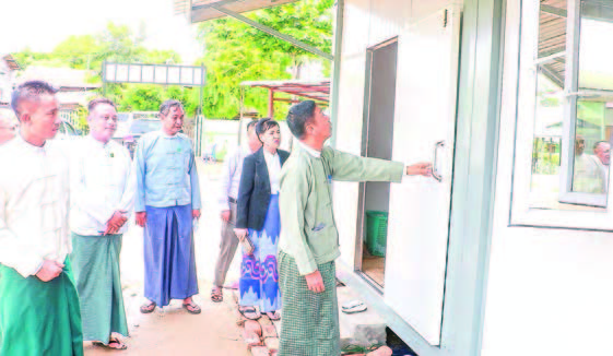 UNION Minister for Social Welfare, Relief and Resettlement Dr Soe Win visited the Basic Education Middle School (Branch) in Thit Tat Village, Zeyathiri Township, Nay Pyi Taw, yesterday morning to inspect the completion of a temporary school building and observe students’ learning.