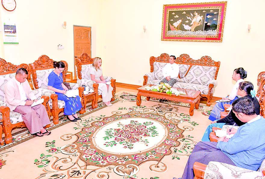 UNION Minister for Social Welfare, Relief and Resettlement Dr Soe Win received a delegation led by Ms Vanessa May, Interim Head of the Office of the United Nations Office for the Coordination of Humanitarian Affairs (UNOCHA), at the ministry’s reception hall yesterday.