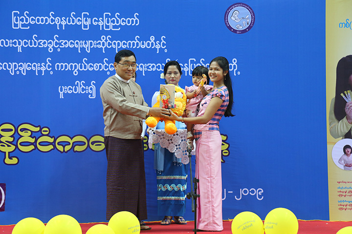 Afterwards, the entertainment section was held and singer Sumo and a child named Ma Thu Thu Han Thar sang an educational song for environmental education. The Union Minister, Deputy Minister and committee members conferred awards to children and their parents who won prizes at the ECCD measurement and physical and mental capabilities contests. Attendees then watched a live demonstration on proper handwashing.