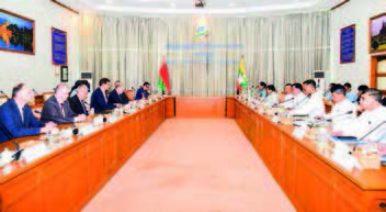 STATE Administration Council Member General Nyo Saw, Union Minister for Investment and Foreign Economic Relations Dr Kan Zaw and Union Minister for Commerce U Tun Ohn received a delegation led by Mr Maxim Ryzhenkov, Minister of Foreign Affairs of the Republic of Belarus, in Nay Pyi Taw yesterday.