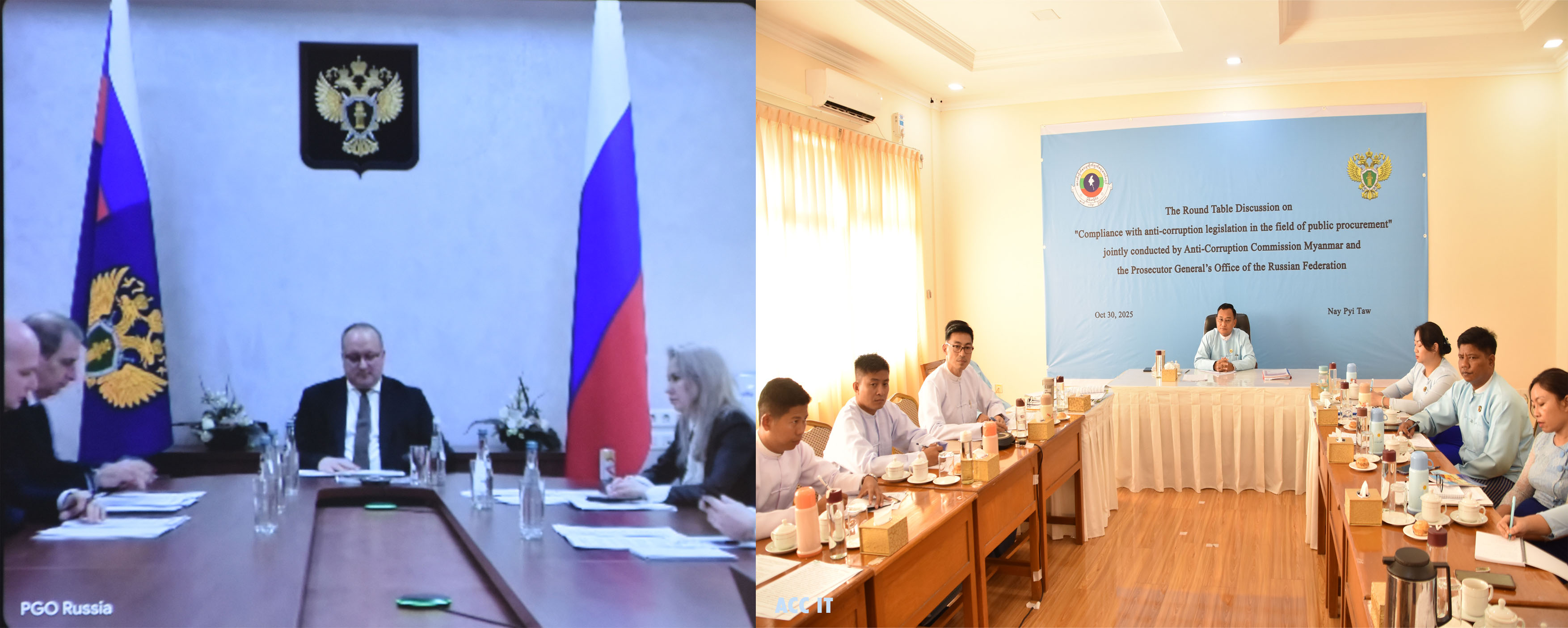 A panel discussion titled “Respecting and Complying with Anti-Corruption Provisions in Public Procurement Processes” was held yesterday afternoon via videoconference at Meeting Hall 2 of the Anti-Corruption Commission Office. The event took place under the 2024-2026 cooperation programme between the Anti-Corruption Commission of Myanmar and the Office of the Prosecutor General of the Russian Federation.