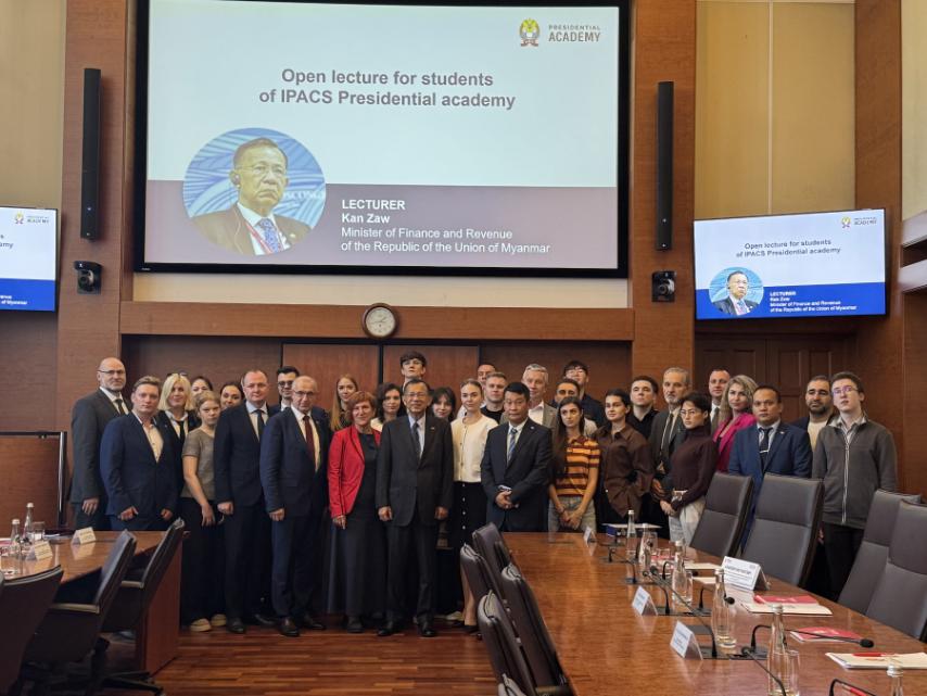 The Union minister, togeth­er with the Deputy Chairman of the State Duma, visited the Russian Presidential Academy of National Economy and Public Administration (RANEPA) at the invitation of the vice-rec­tor of the Russian Presidential Academy. He discussed the top­ic of Economic Development of Myanmar, and observed around the school buildings.