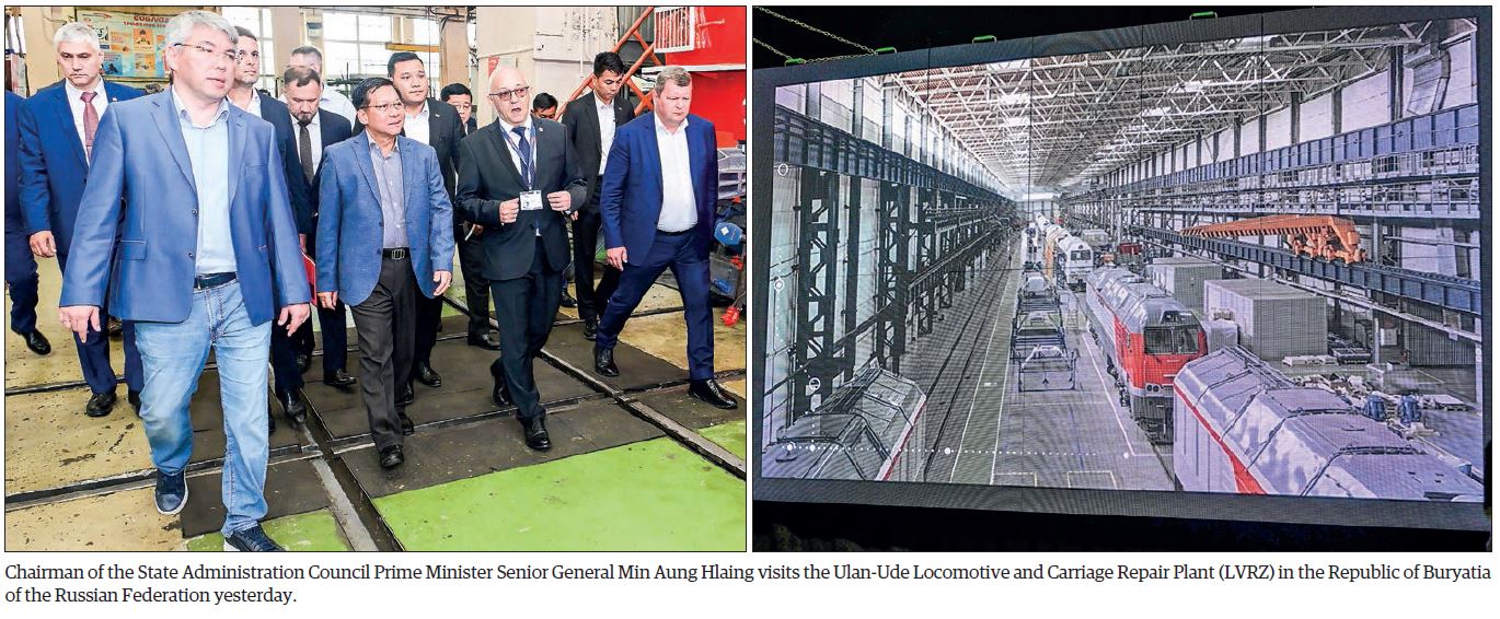 The high-level Myanmar delegation led by Chairman of the State Administration Council Prime Minister Senior General Min Aung Hlaing during his official visit to the Republic of Buryatia of the Russian Federation toured the Baikal Lake and the Ulan-Ude Locomotive and Carriage Repair Plant (LVRZ) yesterday morning.